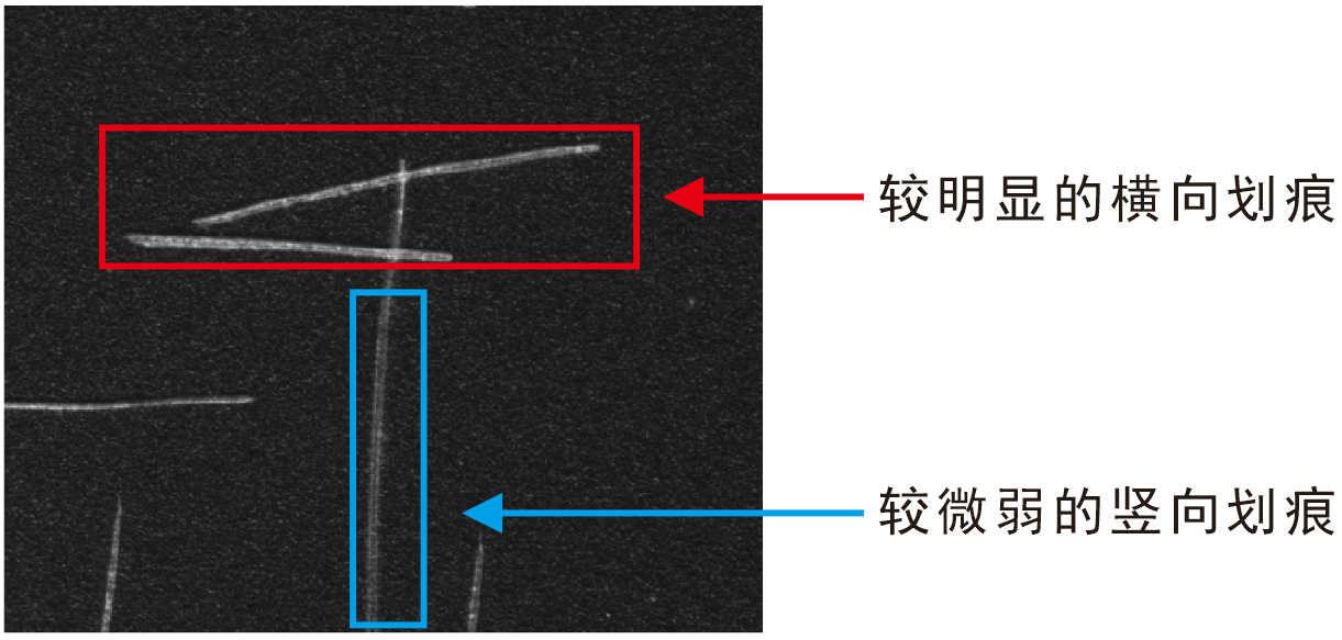 在機器視覺檢測中,線掃應用大大提高了視覺檢測的精度,應對大尺寸產品更具優勢,其中線光源是最常用的光源之一。視覺檢測中均勻性和對比度是滿足檢測需求的必要條件,線掃光源一般增加長度就能達到更好的均勻性,而對比度就需要根據產品的特性來調整光源位置和光照方向使特征凸顯。劃痕類缺陷在檢測中是比較常見的,一般使光照方向與劃痕方向互相垂直就能得到較好效果;而與光照方向平行的劃痕則是不明顯的。線掃光源一般是對著運動方向照射,這種情況下,劃痕類缺陷有些方向就不是特別明顯。