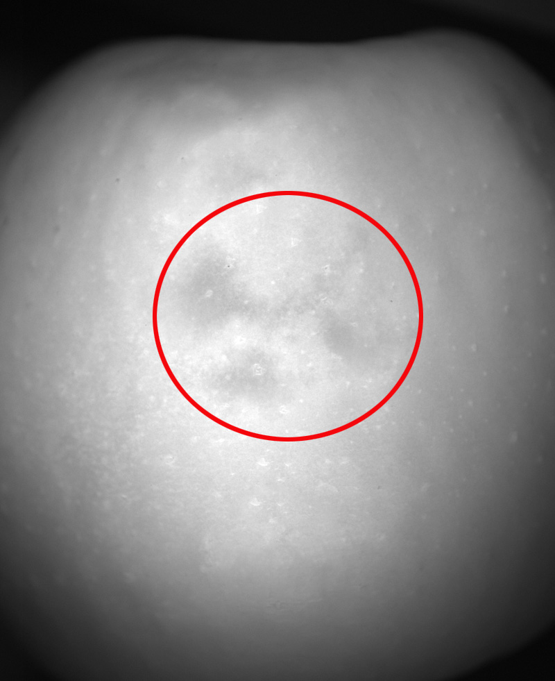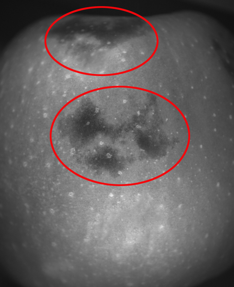 產品的檢測和分類是SWIR最有前途的機器視覺應用之一。例如在該波長的物體圖像中,水幾乎是黑色的,因為它在1450nm和1900nm都有很強的吸附性。因此,使用合適的SWIR光源可以清楚地顯示受損水果、散裝谷物或灌溉良好的作物的水分含量。