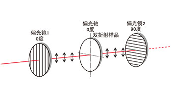 準備標準偏光鏡1(或激光)和偏光鏡2,調(diào)整使做為標準的直線偏光和偏光鏡2為消光狀態(tài)。