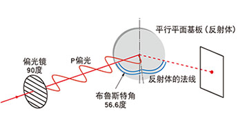 在光學系統(tǒng)中加入作為標準偏光軸的偏光鏡,邊轉動偏光鏡邊觀察平行平面基板上反射的光的強度變化。