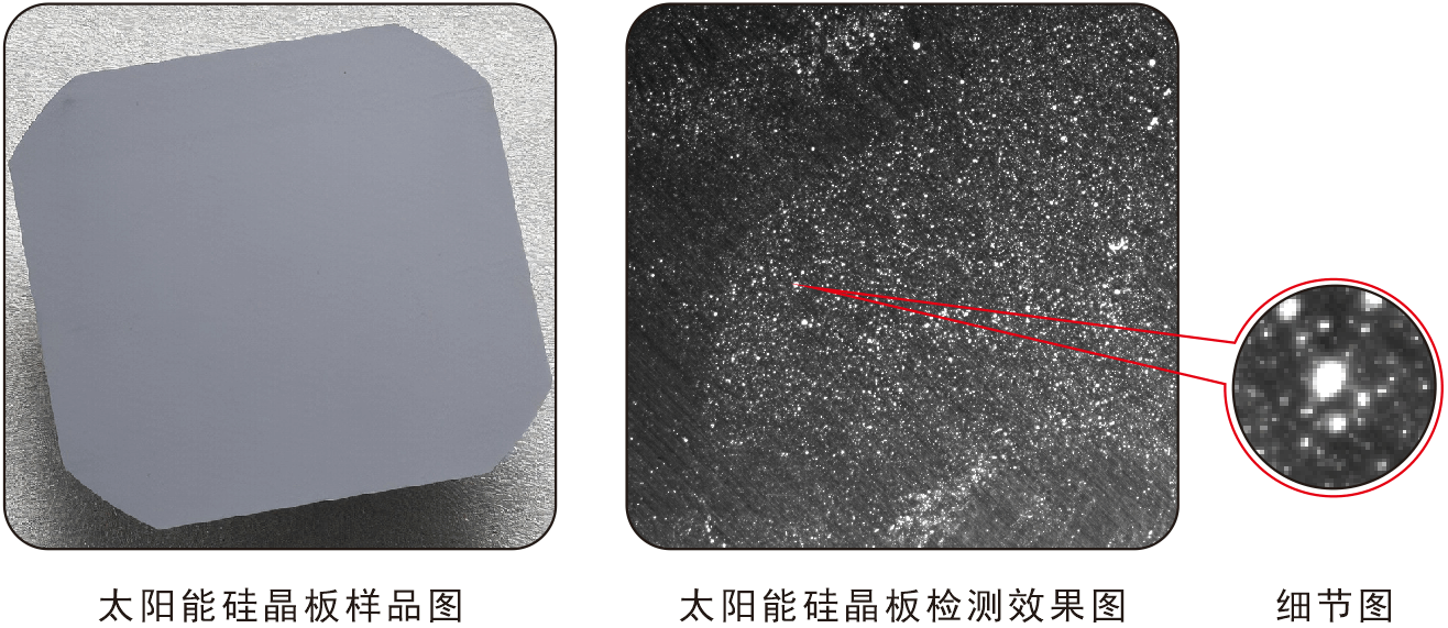 在太陽能硅晶板生產(chǎn)過程中,由于環(huán)境原因或操作不當(dāng)?shù)仍颍瑫?huì)導(dǎo)致表面沾染灰塵,影響光伏發(fā)電效率,因此,需要對(duì)硅晶板進(jìn)行灰塵檢測(cè)。由于灰塵點(diǎn)體積較小,光線平行度不夠時(shí)無法讓表面灰塵顯現(xiàn)出來。線形光纖光源有較好的平行性,用來照射硅晶板表面,能夠讓灰塵與背景呈現(xiàn)較高對(duì)比度,滿足檢測(cè)需求。