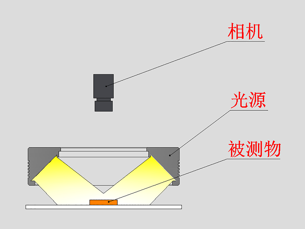 檢測塑料蓋的表面劃痕、碰傷、臟污等缺陷,一般采用高角度垂直光路類型的光源,如高角度環形光或同軸光源,但是產品表面帶有微弱的曲面、且為磨砂面,采用此類光源會不均勻,會導致灰度差別比較大,影響檢測結果。
