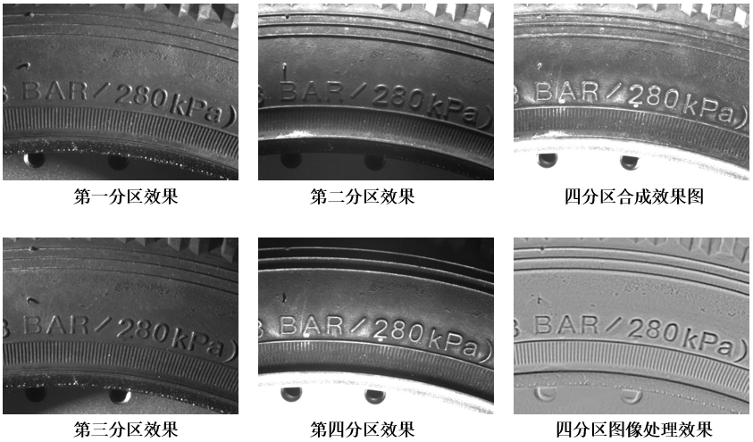 輪胎四個不同方向的成像都未能充分呈現字符。經過多分區光源的照明,并借助光度立體算法,我們獲得了高對比度的圖像,這為算法的穩定識別提供了可靠的圖像數據。