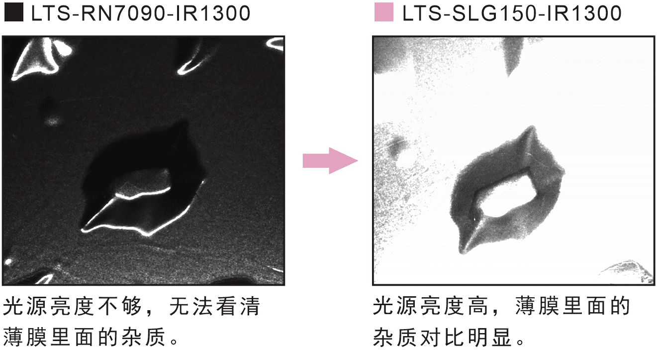 燈箱光源具有高亮特性,在相機低曝光時間下能滿足相機對于光源亮度需求,拍攝出隱藏在產品下的雜質缺陷。