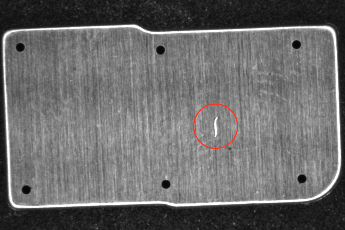 產品暗場打光,將產品劃痕打亮,缺陷對比明顯。