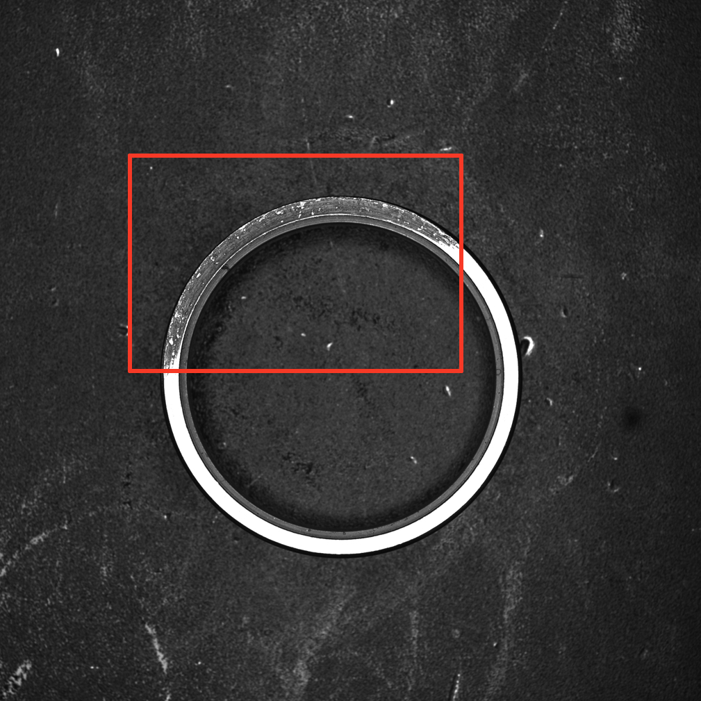 產品亮場打光,表面黑色為產品臟污,黑白對比明。