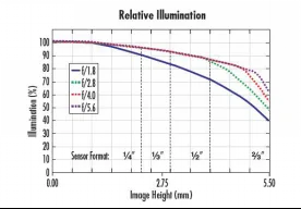 在成像平面上視場角中心點與全視場角的照度比值。通過比較不同位置上的相對照度值,可以了解光學鏡頭在整個視場范圍內光線分布的均勻程度。這對于確保圖像質量的一致性非常重要。