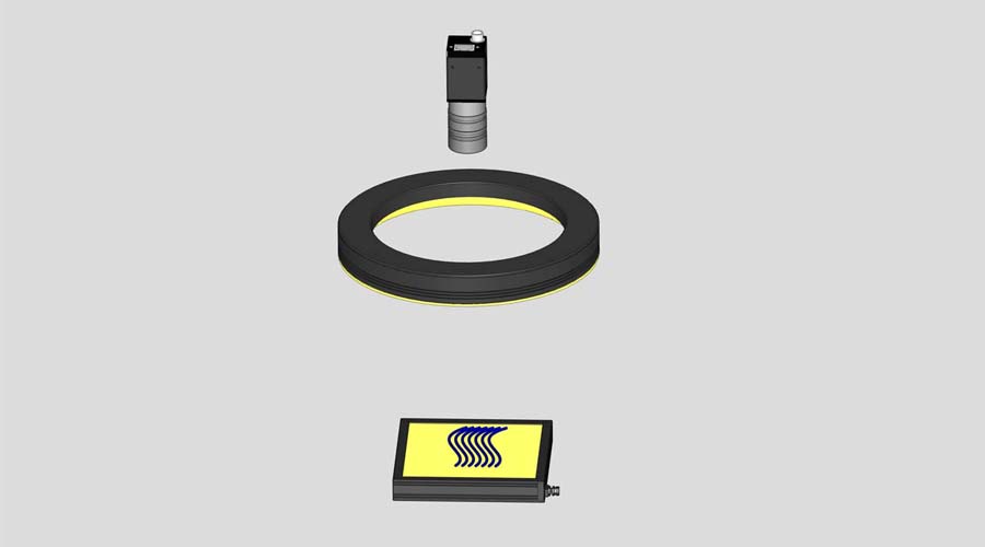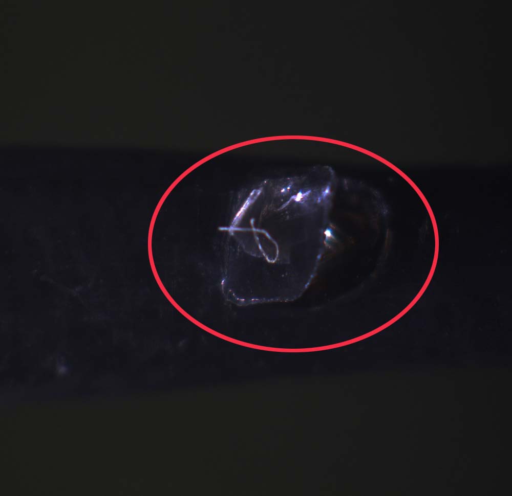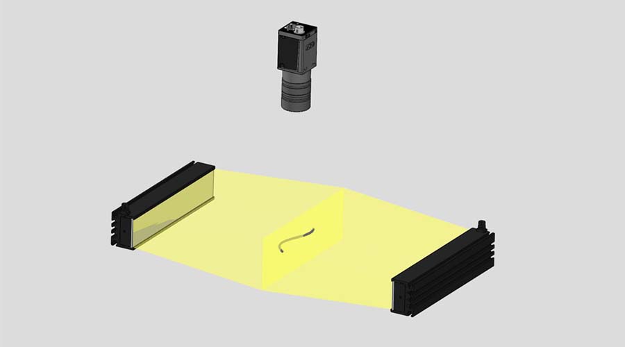 使用環(huán)形光源兩側(cè)面打光,線表面打黑,缺陷打亮,黑白對(duì)比明顯。
