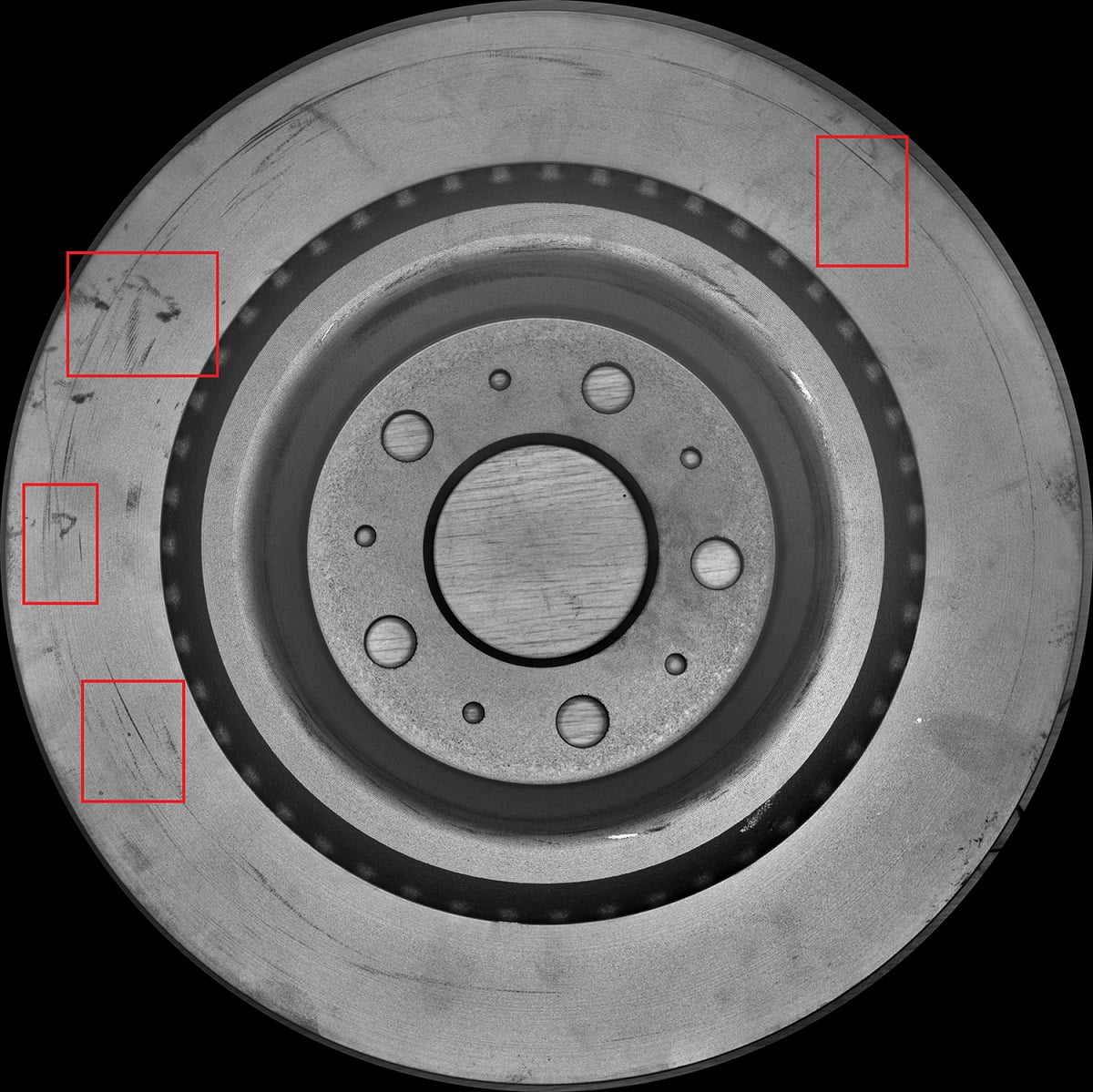 目前,剎車盤表面缺陷檢測常用的技術包括渦流檢測、磁粉探傷、紅外檢測、X 射線檢測以及機器視覺檢測等。與其他接觸式測量工具或人工目視檢測相比,機器視覺檢測憑借著無損、非接觸式特點;具有檢測數據準確度高,效率高,能顯著降低人工成本等優勢,正逐漸廣泛應用于這一行業。該技術能快速采集剎車盤表面的高分辨率圖像,并使用強大的深度學習圖像處理算法,實現對多種外觀缺陷識別、區分和關鍵尺寸的精確測量。