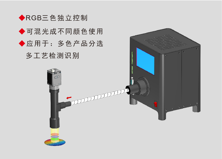 三色光纖光源通過一臺設備實現RGB三色獨立或混光輸出,節省空間的同時,還能同步獲取三個光學成像通道,特別適合生物成像、材料分析這類需要多參數檢測的場景。