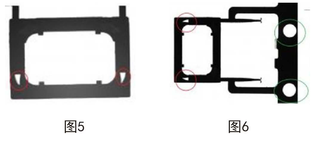 圖5,用普通的鏡頭拍攝,由于視覺誤差和聚焦不準(zhǔn),所以在拍攝塑膠模具的透氣孔時(紅圈圈定),出現(xiàn)內(nèi)壁可見,邊緣提取不清晰,有陰影的現(xiàn)象,對識別造成影響,數(shù)據(jù)不準(zhǔn)確。