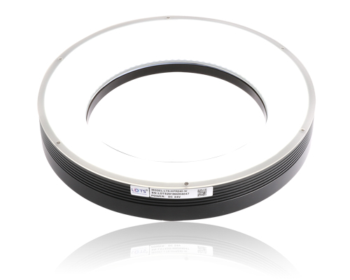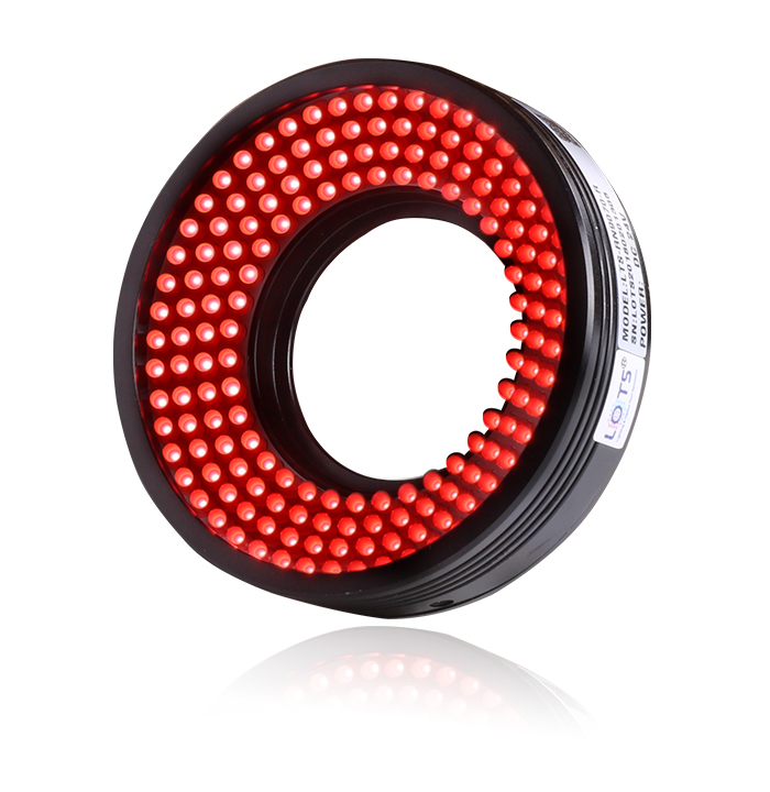(2) 正面明場:產品與模具材質及反光度差異較大,可使用LOTS高角度環形光源正面照射,光源靠近鏡頭成高角度照射,使產品表面比較亮白,與黑色模具背景形成鮮明對比。效果如下: