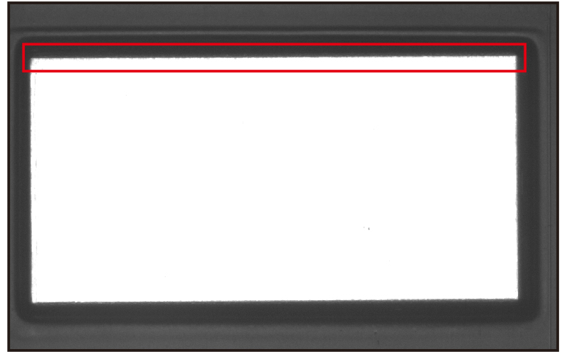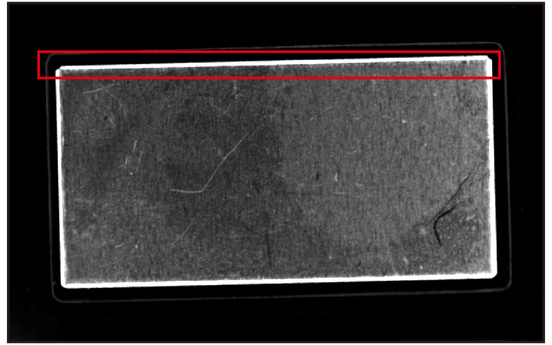 (3)正面暗場:暗場打光優點在于能夠消除表面反光,對于凌厲的邊會很容易打亮。下圖使用LOTS低角度環形光源低工作距離照射。白色邊緣與黑色表面對比明顯。