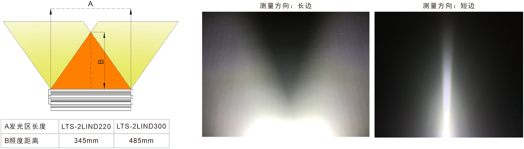 ★B距離為光源可以使用的高度參數,例如:LTS-2LIND220,照射距離為345mm,即光源最大高度345mm。