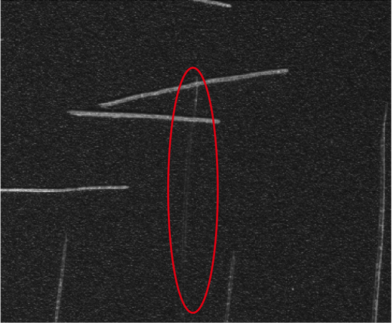 ★與常規線光效果對比。在線掃描相機下凸出豎方向劃痕類缺陷。
