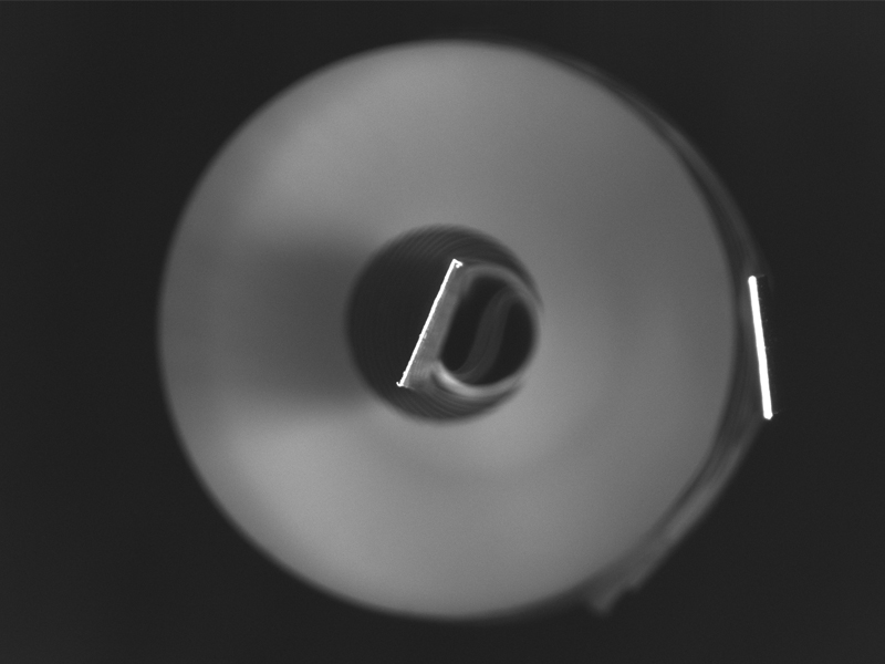 選型依據(jù):使用較小的低角度環(huán)光,能夠避免白色背景的反光,凸顯出金屬極耳片的白色輪廓邊。