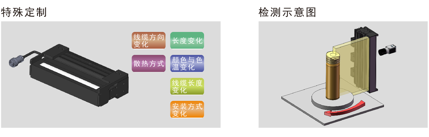 * 最長可定制3米。紫外和紅外光源可根據客戶要求定制。 * 發光峰值波長/相關色溫:紅色:620-630nm,綠色:525-530nm,藍色:465-470nm,白色:6600K(色溫) |