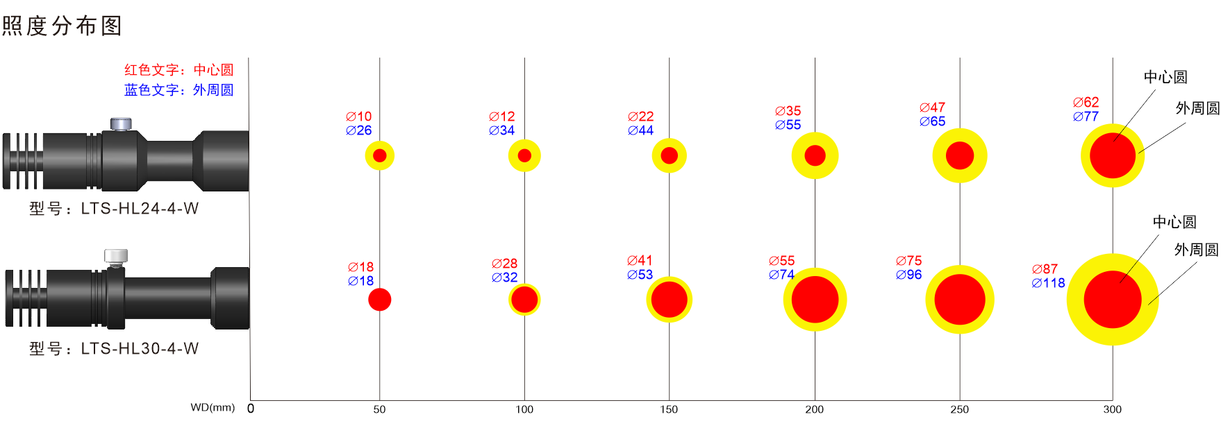 * 紫外和紅外光源可根據客戶要求定制。 * 發光峰值波長/相關色溫:紅色:620-630nm,綠色:525-530nm,藍色:465-470nm,白色:6600K(色溫) |