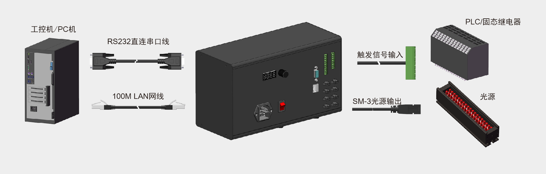 當外部連接觸發信號時,觸發“+”輸入高電平5-24V “-”接地時,光源滅。