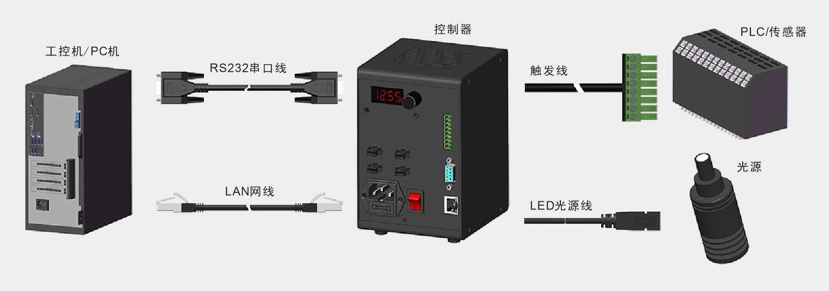 當外部連接觸發信號時,觸發“+”輸入高電平5-24V “-”接地時,光源滅。