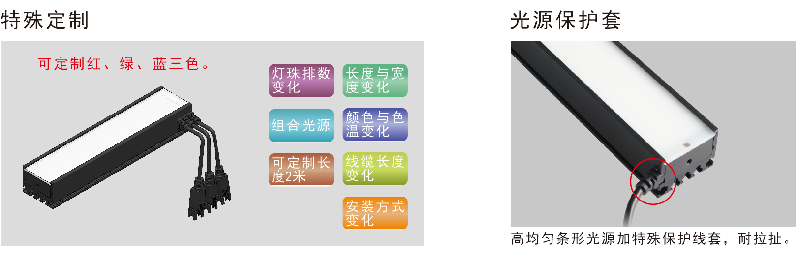 * 紫外和紅外光源可根據客戶要求定制。 * 發光峰值波長/相關色溫:紅色:620-630nm,綠色:525-530nm,藍色:465-470nm,白色:6600K(色溫) |