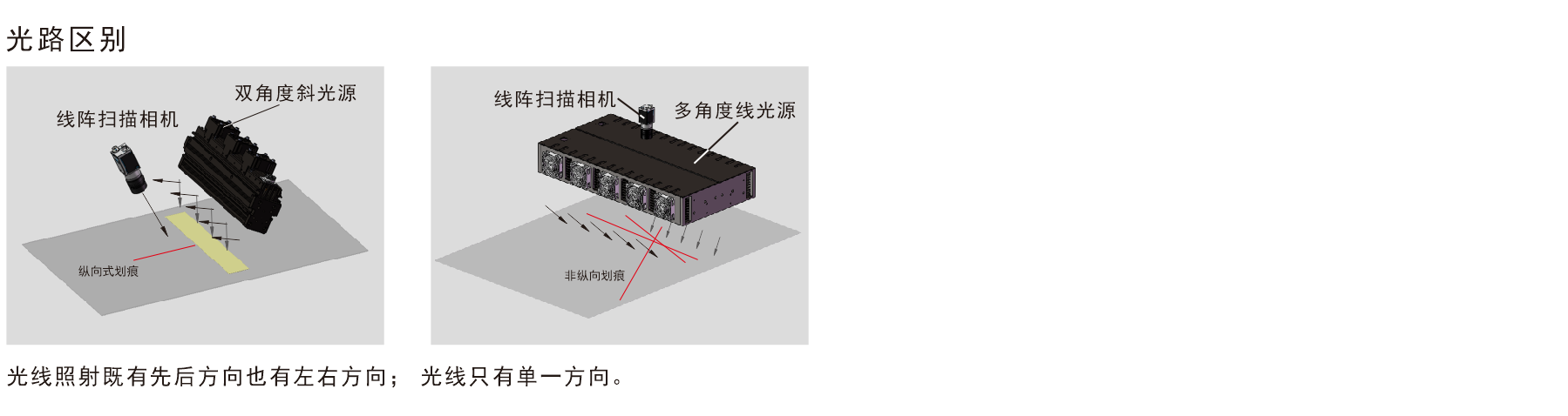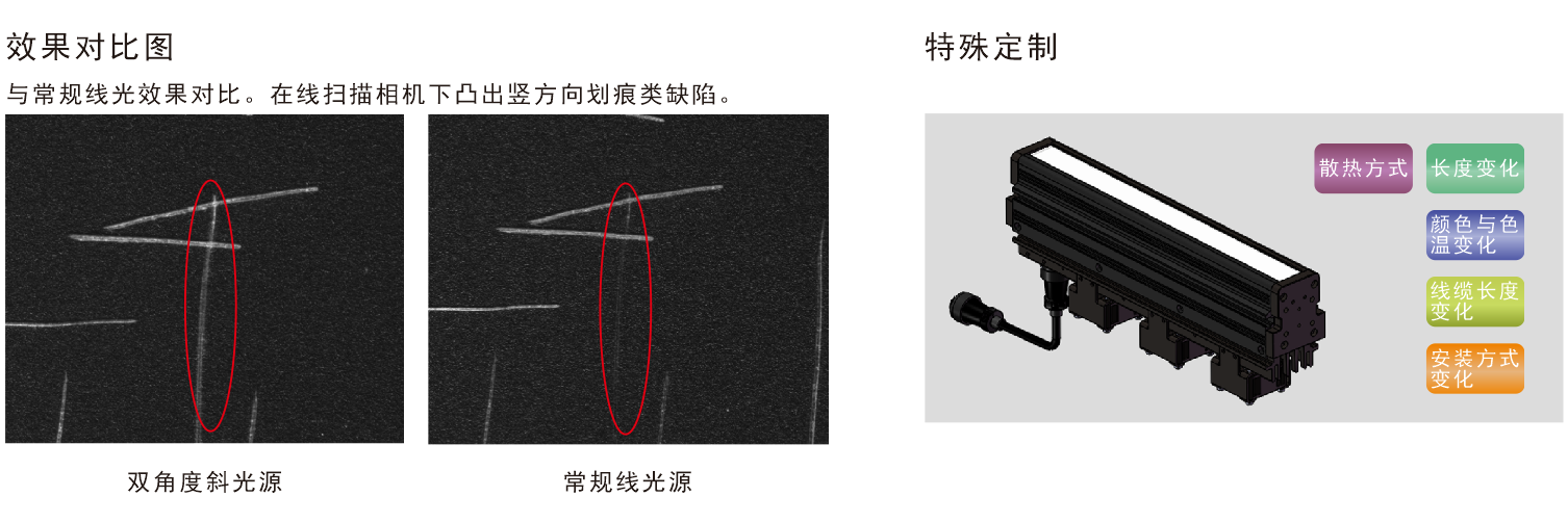 1.采用特殊光學(xué)設(shè)計(jì)結(jié)構(gòu),實(shí)現(xiàn)兩側(cè)斜光照射