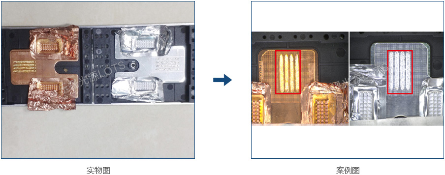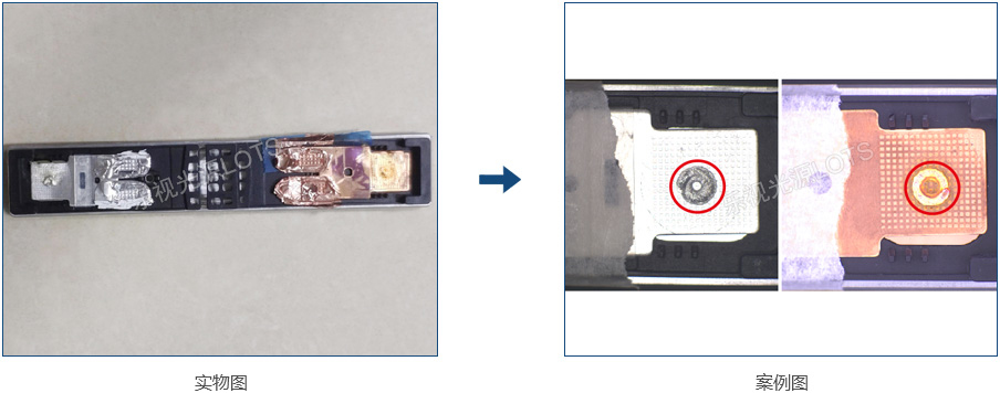 檢測同一個工位鋰電池陰極和陽極的焊印,使用圓頂光源對陽極焊錫比較明顯,陰極需均勻且有垂直光,圓頂配同軸光源可以有很好的效果。