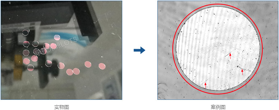 產(chǎn)品為玻璃表面,使用平行性好的平行同軸光源,光源均勻打在產(chǎn)品表面,底面打白,有缺陷處打黑。