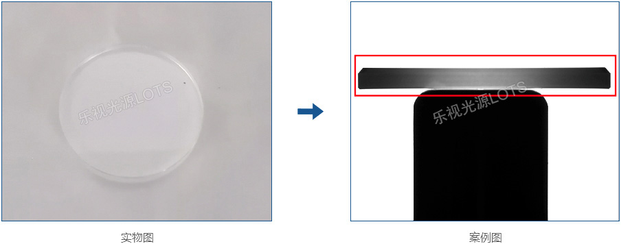 產(chǎn)品需檢測透鏡厚度,考慮側(cè)面打光,因產(chǎn)品反光高。所以用能消除炫光的平行背光,成像對比度好。