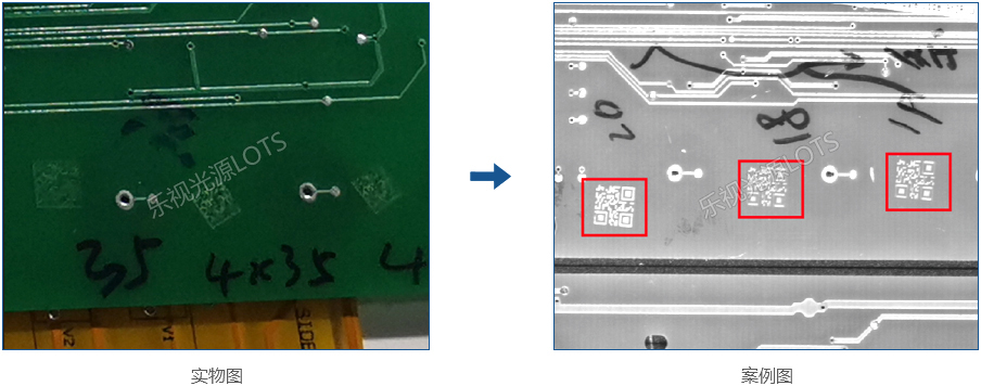 采用紅色高均勻條形光側面照射,使背景為黑凸顯白色二維碼。