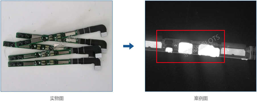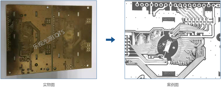 產(chǎn)品為反光材質(zhì),線路部分無反光,光源打白產(chǎn)品背景與黑色線路對比明顯。