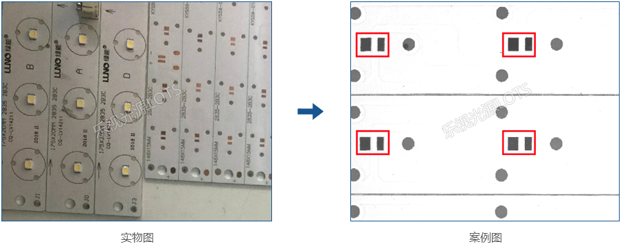 采用低角度環(huán)形光,光源反射使背景為白,點膠區(qū)域為黑形成鮮明對比。
